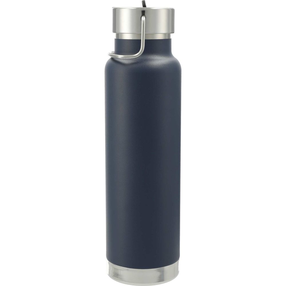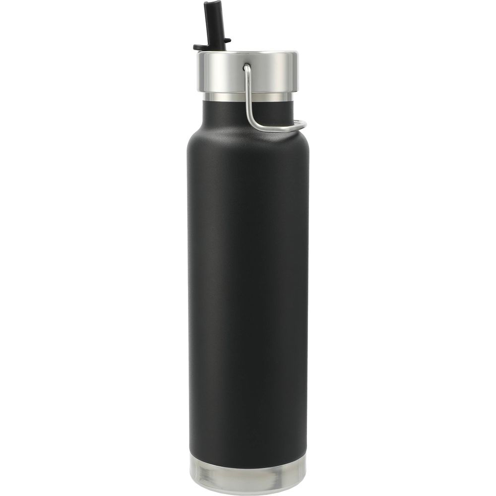 Durable, double-wall stainless steel vacuum construction with copper insulation, which allows your beverage to stay cold for up to 48 hours and hot for at least 12 hours. The construction also prevents condensation on the outside of the bottle. On-trend, durable powder coating. Stainless steel screw-on, spill resistant lid with integrated straw and durable stainless steel hand loop. Wide opening for comfortable filling and pouring. Perfect for ice cubes. Fits most standard car cup holders. 25oz. Leeds exclusive. Note: Drinking hot beverages with the straw is not recommended. Remove lid to allow beverage to cool.