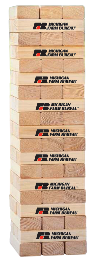 Giant Jengas BLOCK game. Game Starts at 2 Feet Tall and can grow up over 4 Feet Tall. Comes with 56 customized pieces which measure 6" x 2" x 1.3". The game comes with a convenient nylon carry bag.